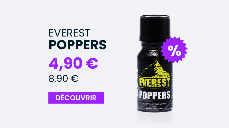 Everest Aromas, la grande marque de poppers origine France que vous ne trouverez nulle part ailleurs. Everest Aromas, c'est une diversité d’arômes du plus doux au plus fort : Everest Original, Brutal, Zero, Black Label ou encore nos petits derniers Everest Climax et Everest Green, pour encore plus de fun. Découvrez aussi le poppers le plus fort de tous les poppers du monde : l'Everest Premium Ultra Strong. Constitué à base de 95% de pur amyle, c’est un produit made in France with love seulement sur poppers.paris.